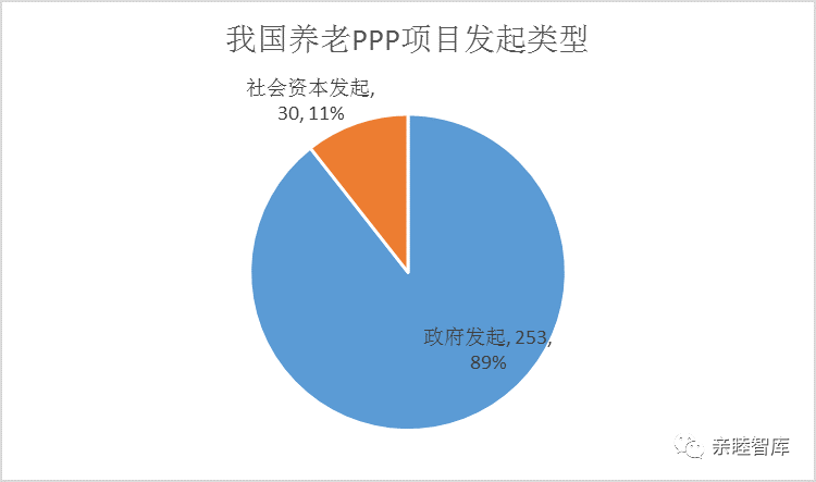 从发起类型看,养老PPP项目主要由政府发起,其比例达到89%,而社会资本发起的养老PPP项目比例仅占11%。从回报机制看,使用者付费占70%,可行性缺口补贴和政府付费分别占27%和3%。